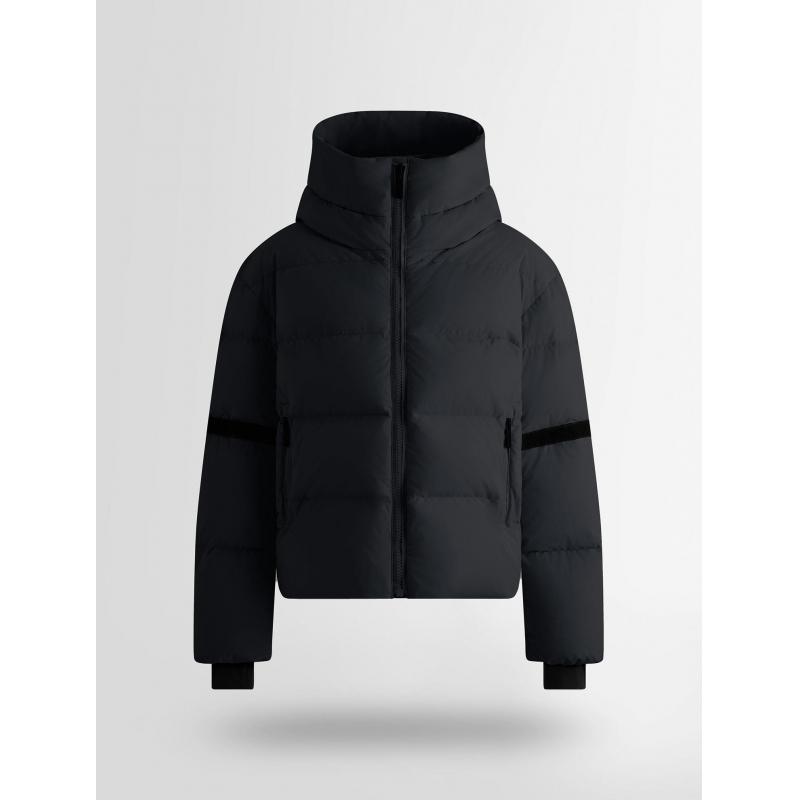 Barsy dunjakken er sesongens uunnværlige plagg. Med sitt boksete, oversized snitt kombinerer den moderne stil med absolutt komfort. Den sjenerøse vattering og det vanntette stoffet gjør den til en perfekt alliert mot kulde og tøft vær. Designet for å være allsidig, tilpasser denne varme dunjakken seg alle dine ønsker: i byen gir den et fasjonabelt og feminint preg når den kombineres med et elegant skjørt eller skreddersydde bukser; på fjellet og i skibakkene følger den deg like uanstrengt, og gir varme og beskyttelse under dine snødekte utflukter
