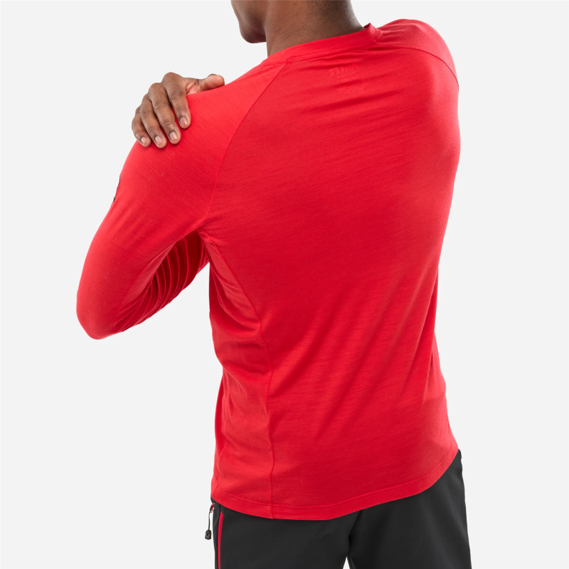 Enda en hindring å overvinne. Vår langermede TRILOGY WOOL t-skjorte med raglanermer beveger seg perfekt med oss. De sømløse armhulene er utrolig komfortable. Og til tross for alt vårt harde arbeid, vil vi garantert holde oss tørre. Dens ull/polyesterblanding sikrer perfekt termoregulering, god fuktighetsoverføring og tørker raskt. Lett og pustende, denne tekniske t-skjorten har en slim passform. Den er ideell for alle våre anstrengende fjellaktiviteter.